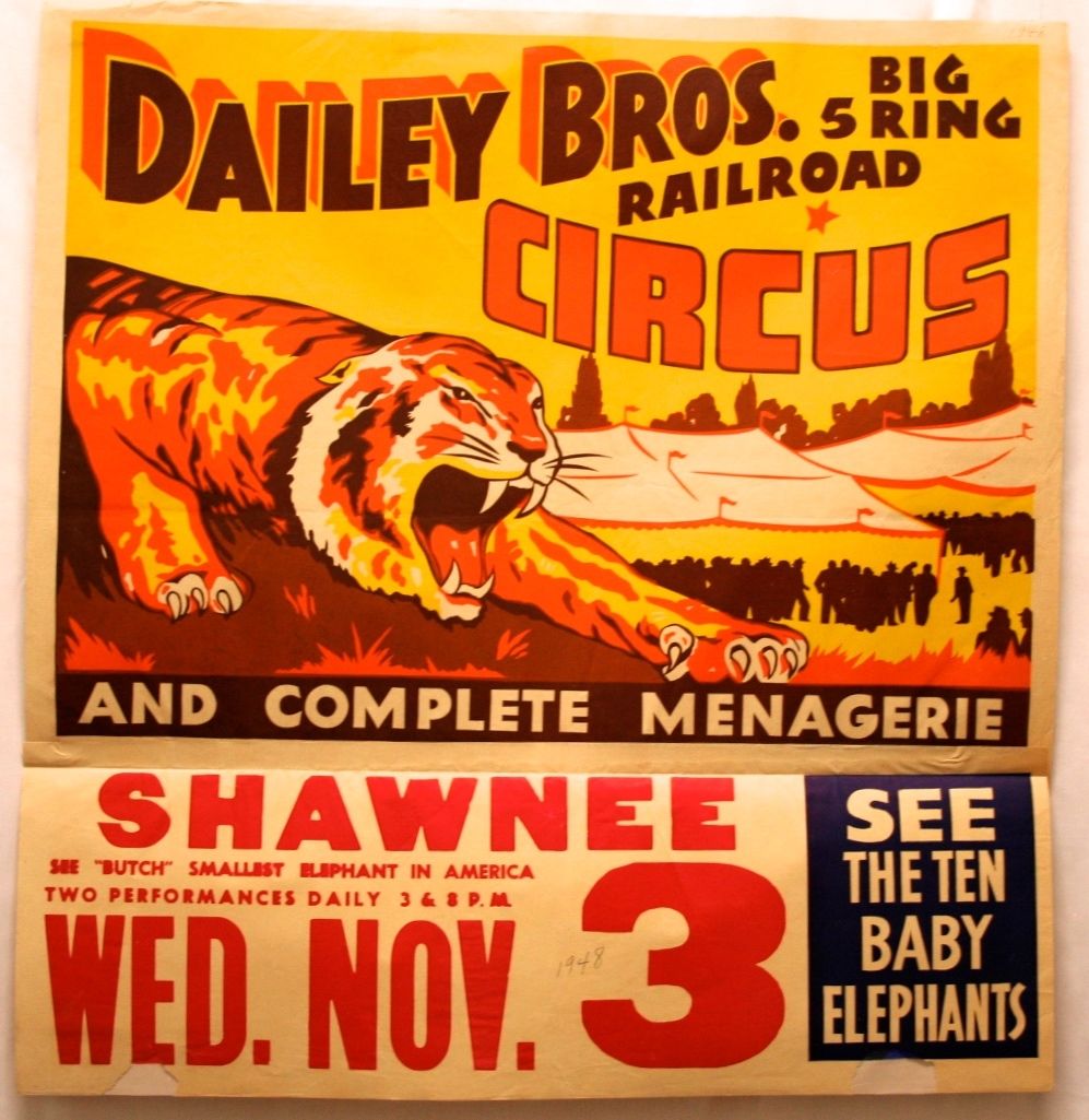 VINTAGE ORIGINAL DAILEY BROS. BIG 5 RING RR CIRCUS POSTER W/DATE TAIL NR