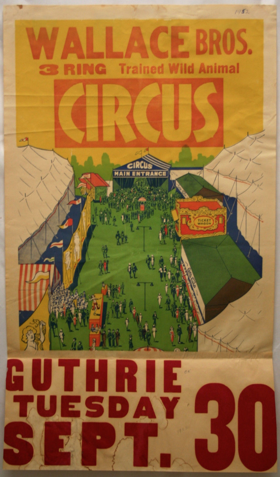 VINTAGE ORIG WALLACE BROS. CIRCUS POSTER W/DATE TAIL NR
