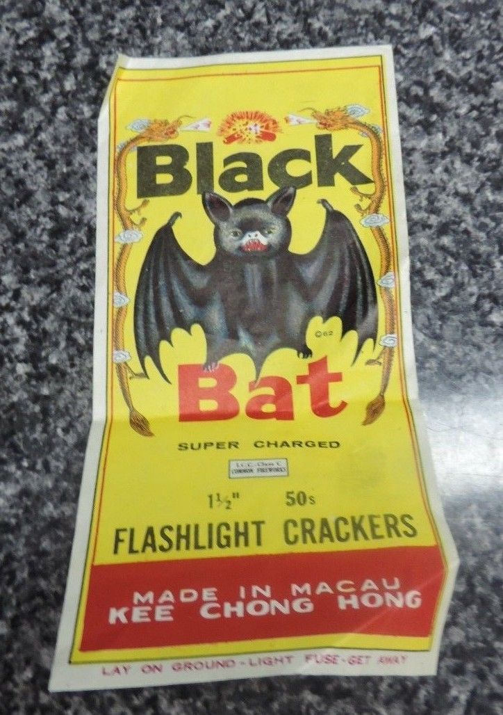 Title (ebay affiliate link): Black Bat Super Charged Flashlight Crackers Label Only 1 1/2" 50s Macau Class C