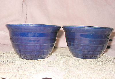 Title (ebay affiliate link): USA Monmouth Western Stoneware 2 Sm Cobalt Blue Ribbed Beehive Bowls Maple Leaf