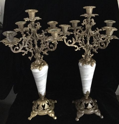 Title (ebay affiliate link): (2) Antique ART NOUVEAU Marble & BRASS CANDLE Holder CANDELABRA for Parts Repair