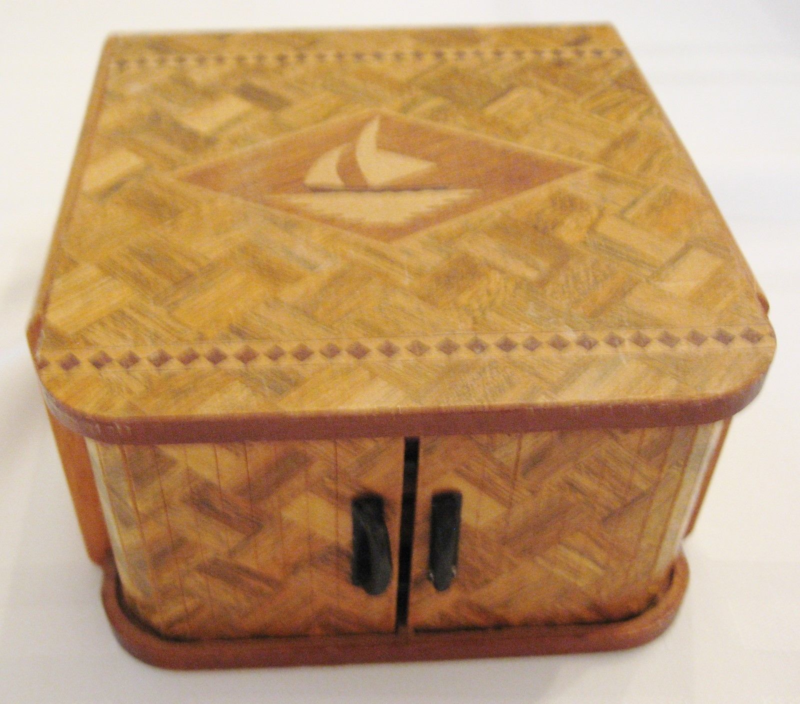 Inlaid Wooden Playing Card 2 Drawer Rolled Side Box + Bonus