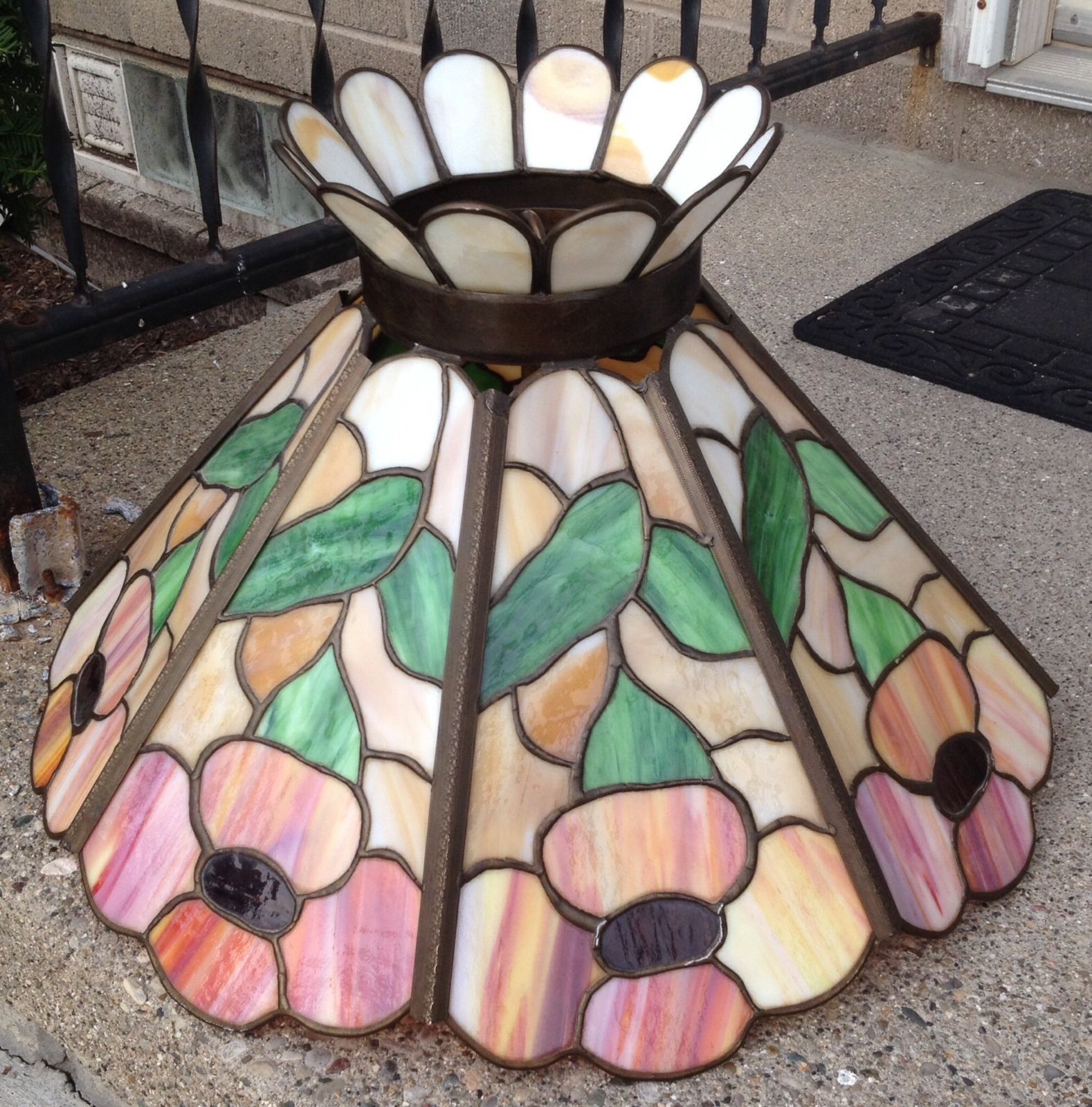 Beautiful Large Vintage Arts & Crafts Slag Glass Hanging Light Shade