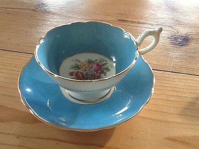Vintage Footed Tea Cup and Saucer Coalport Fabulous Aqua Blue