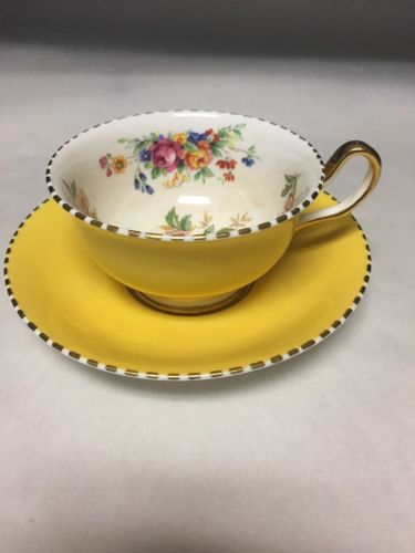 Title (ebay affiliate link): Royal Chelsea Tea Cup and Saucer Yellow Wide Mouth Footed Flowers With Gold Trim
