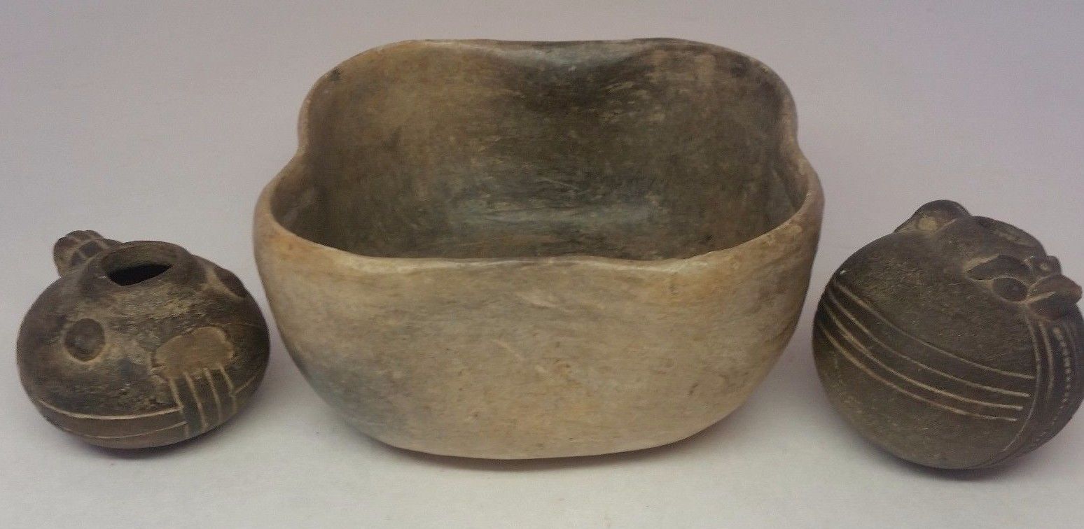 Title (ebay affiliate link): ANCIENT PRE COLUMBIAN POTTERY BOWL & SMALL JARS VESSELS 100% Authentic Artifacts