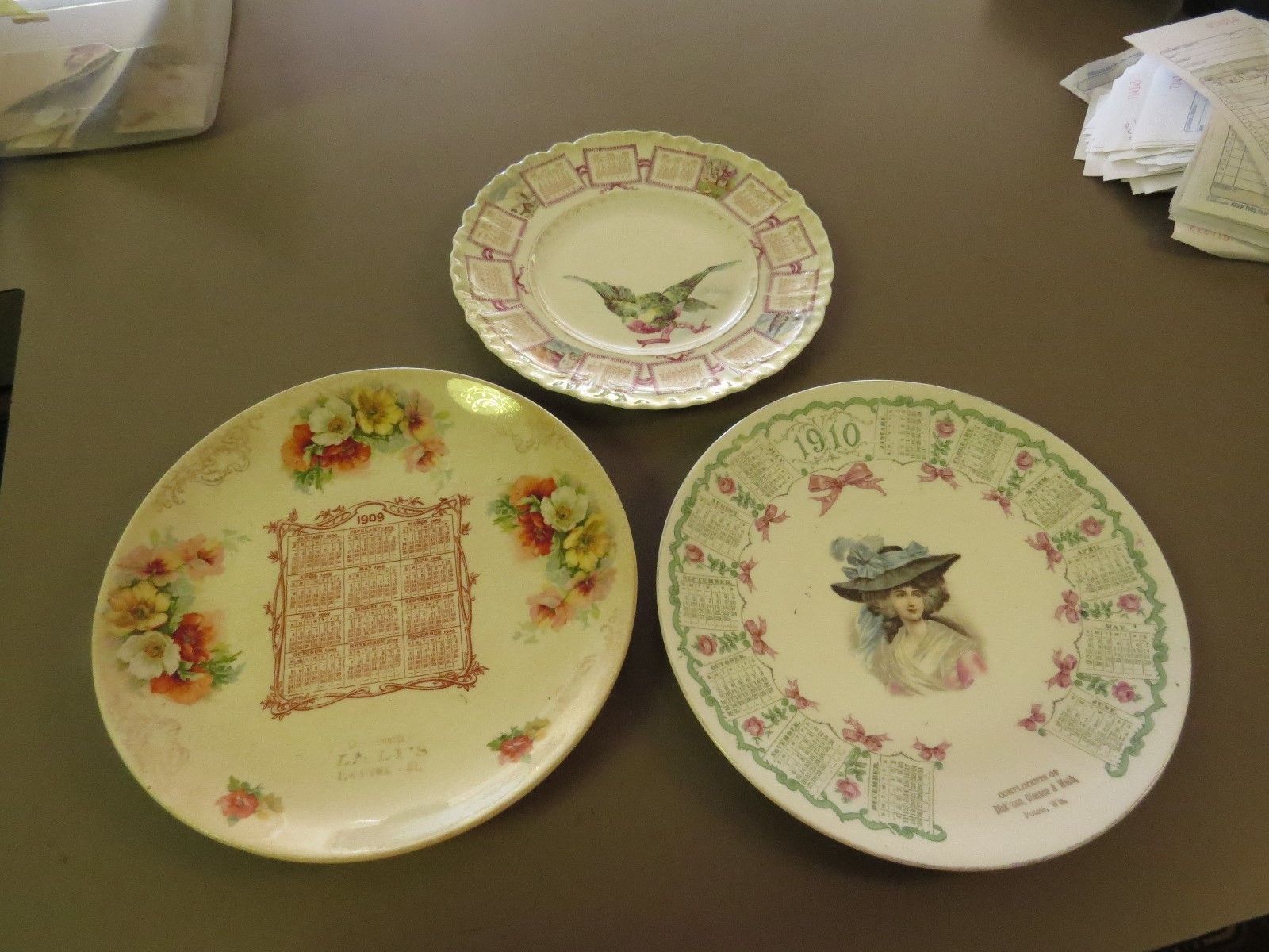 3 Antique Calendar Plates 1909 1909 1910