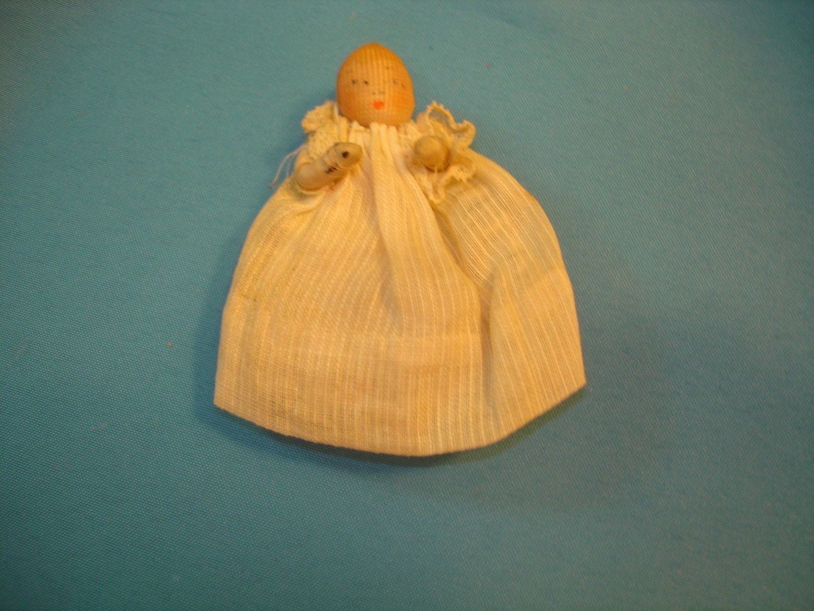 Tiny Antique Cloth Dollhouse Doll baby in dress
