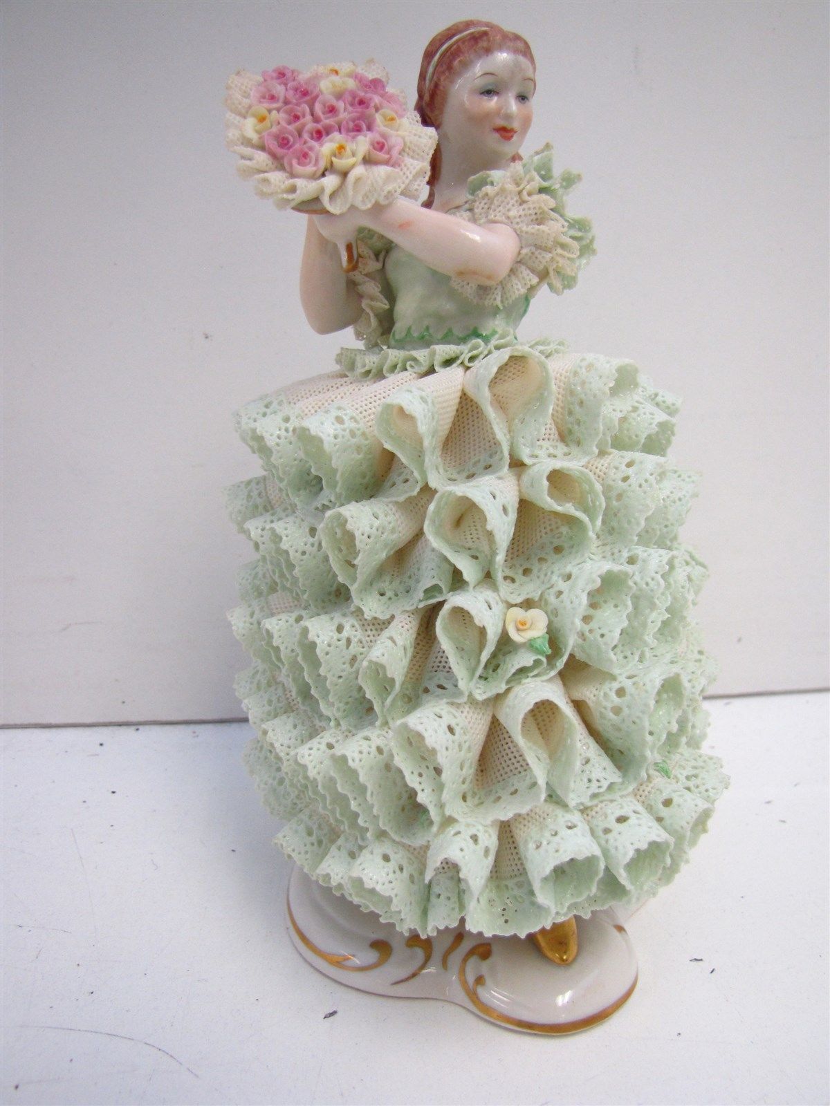 Title (ebay affiliate link): Vintage 8" Irish Dresden Muller Volkstedt Lady Rose of TraLee Emerald Collection