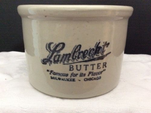 Title (ebay affiliate link): VINTAGE Lambrecht Butter stoneware Crock Milwaukee - Chicago!!!!!!!