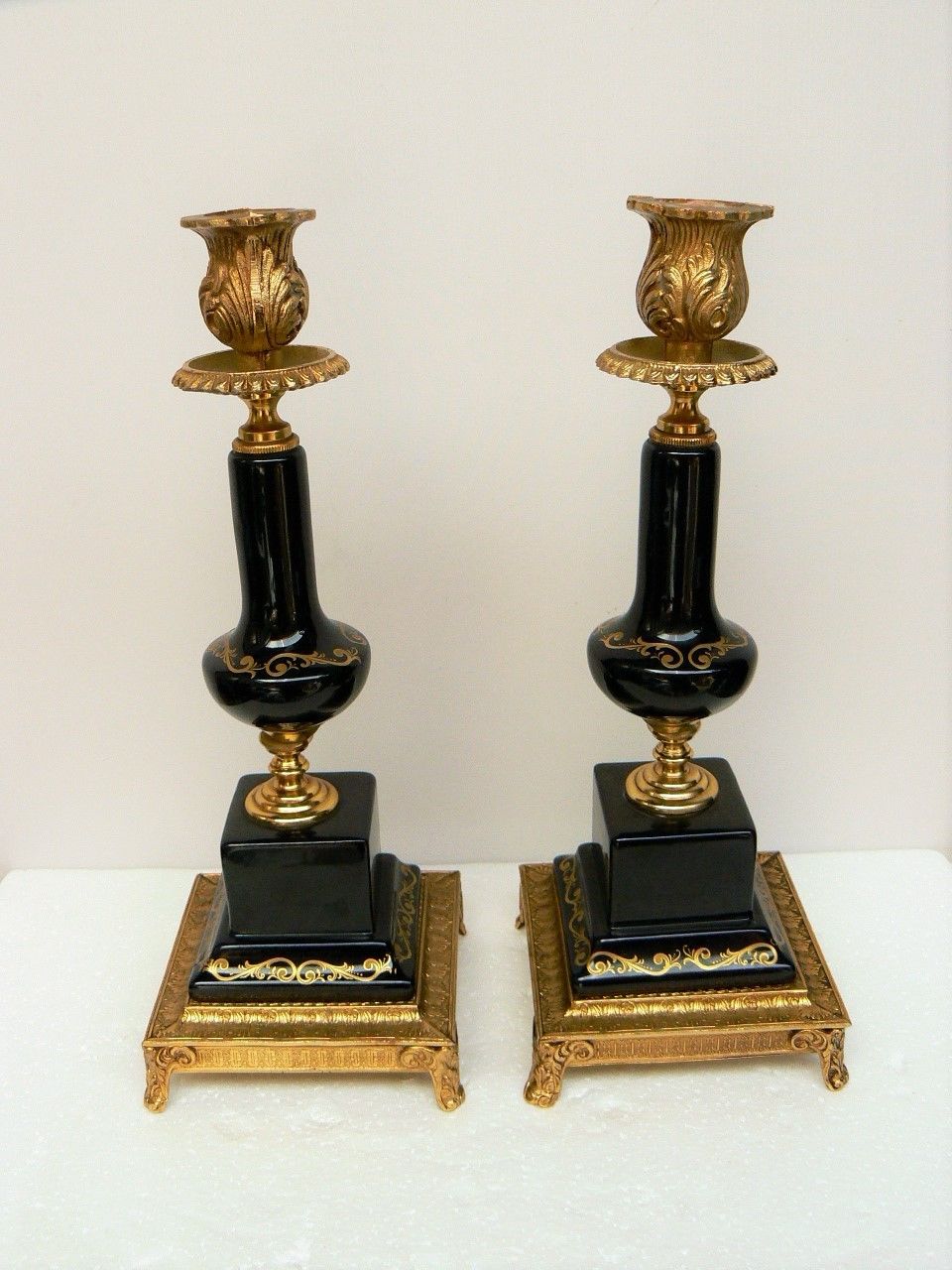 Gorgeous pair French ornated candlesticks Limoges style