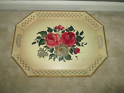 VINTAGE NASHCO TOLL PAINTED & SIGNED LARGE METAL SERVING TRAY - 20"