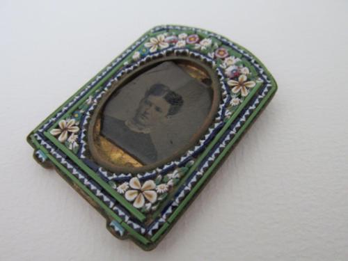 Title (ebay affiliate link): Vintage MICRO MOSAIC Green Miniature Photo Frame Flowers (no easel) Italy