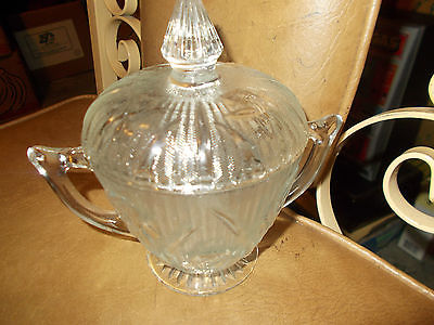 Vintage Jeannette Iris & Herringbone Crystal Depression Glass Sugar Bowl w Lid
