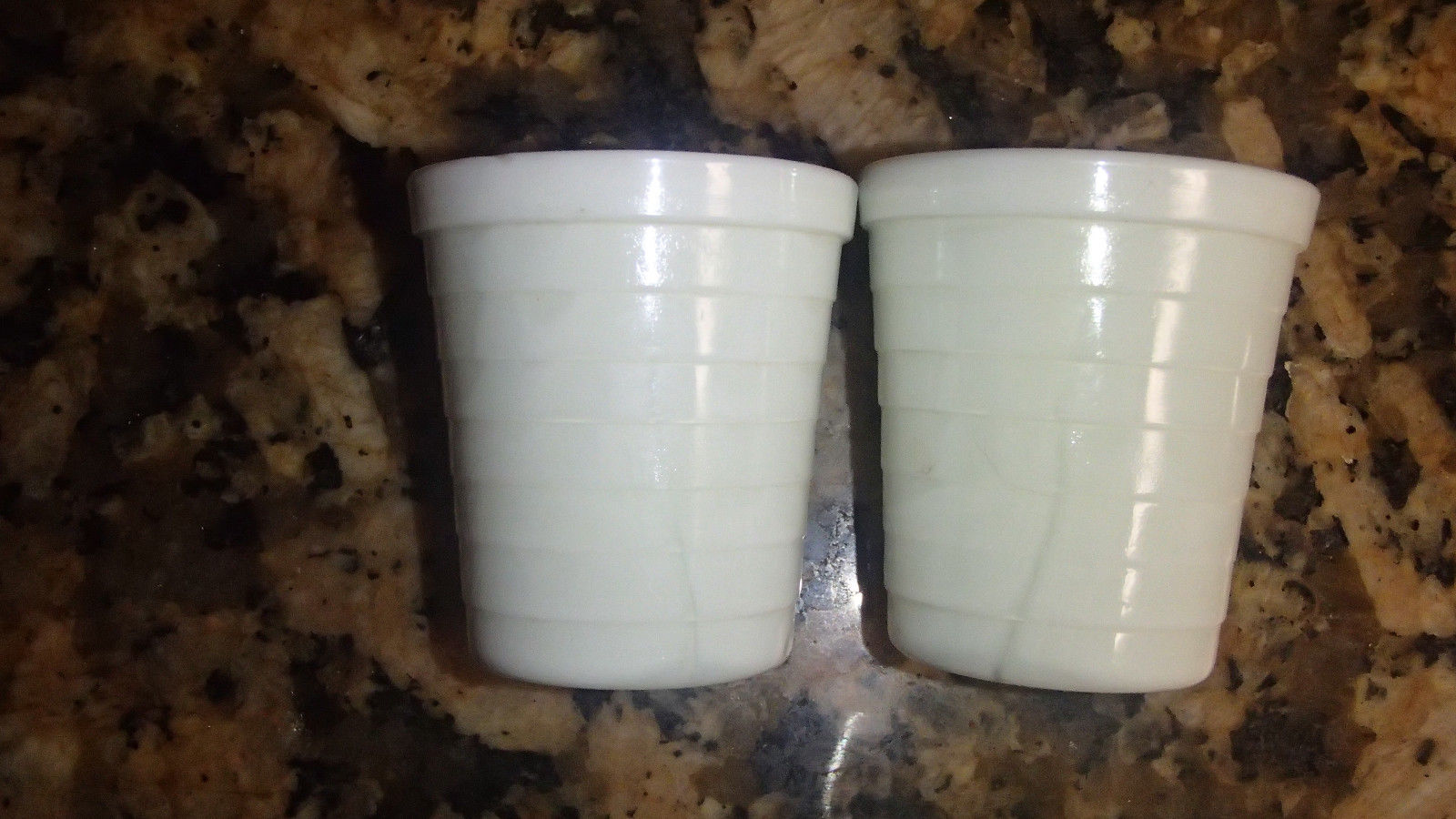 Title (ebay affiliate link): 2 Akro Agate Shot glass / Child's Tumblers / White Milk Slag Glass