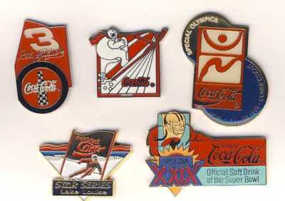5 Coca Cola Sport Lapel Pins Lot No.1
