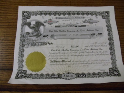 Title (ebay affiliate link): Coca-Cola Coke Bottling Co Stock Certificate LaPorte In