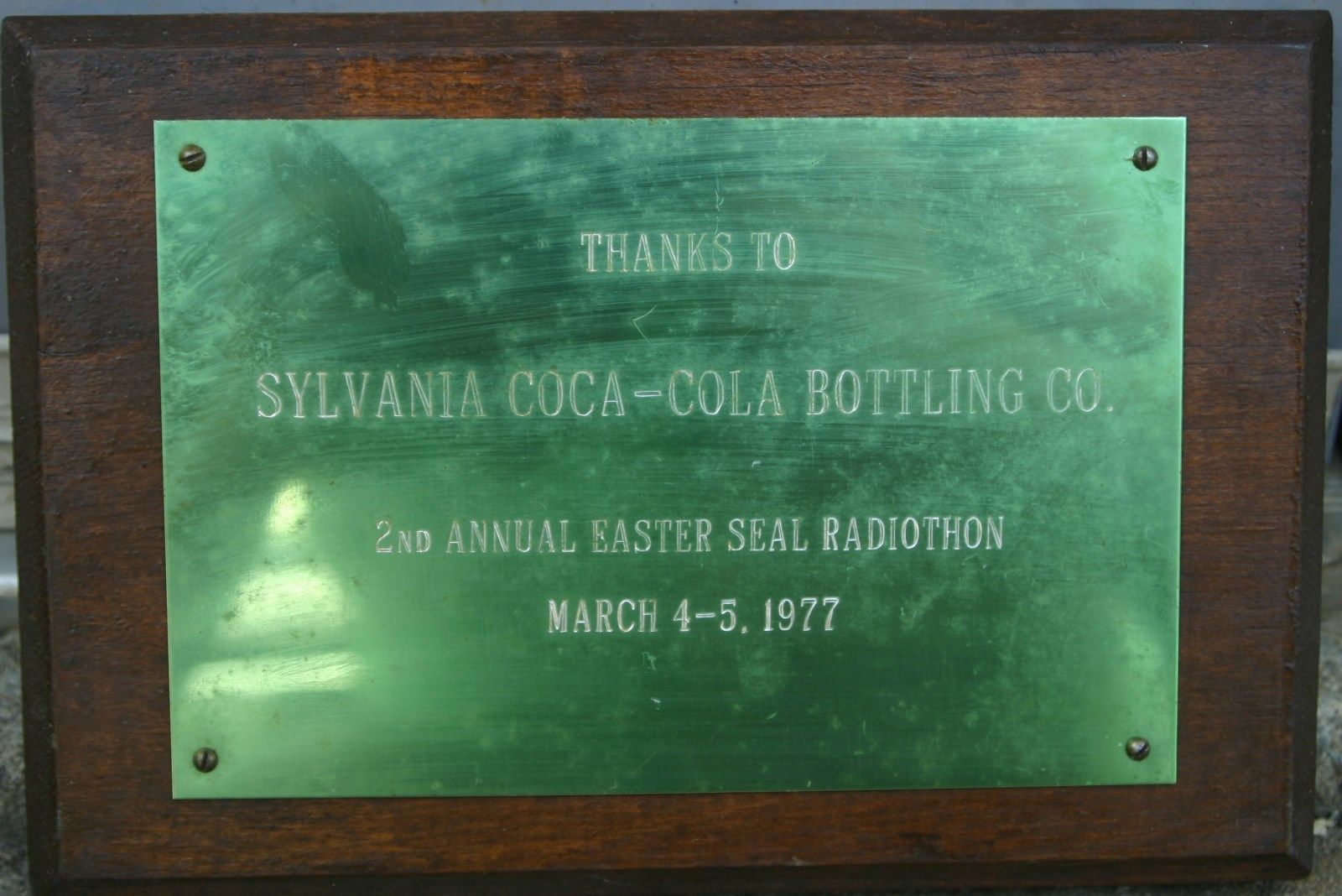 1977 Sylvania Coca Cola Bottling Company Easter Seals Radiothon Plaque