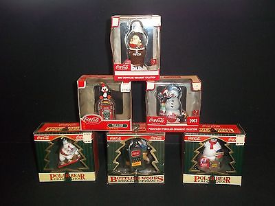 NEW COCA-COLA Ornaments Lot of 6 Polar Bear Snow Globe Trim a Tree Pearlescent