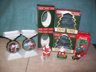 Title (ebay affiliate link): 5 COCA COLA SANTA CHRISTMAS ORNAMENTS ALL WITH BOXES