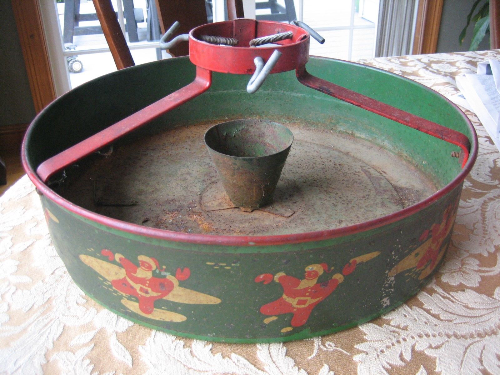 ANTIQUE NESCO 1930's Dancing Santa Claus Metal Christmas Tree Stand