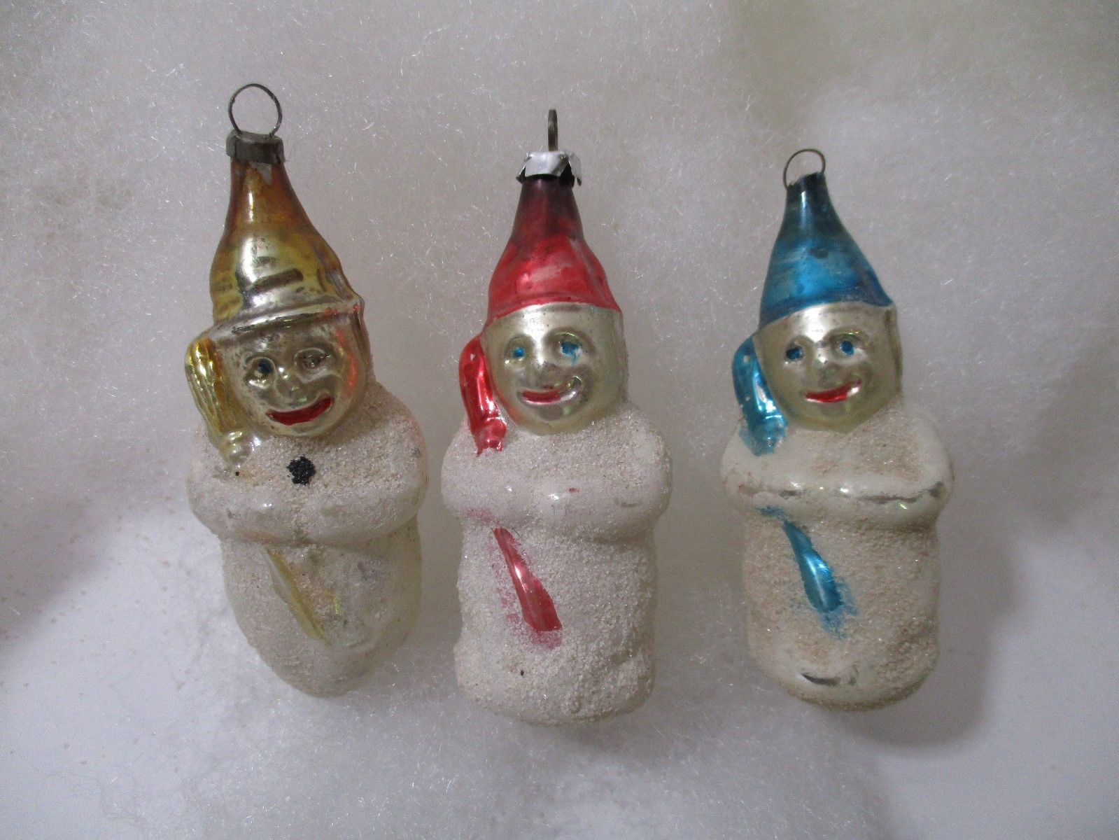 Title (ebay affiliate link): 3-Vintage Hand Blown Mercury Glass Mica Snowman Chirstmas Ornaments GERMANY