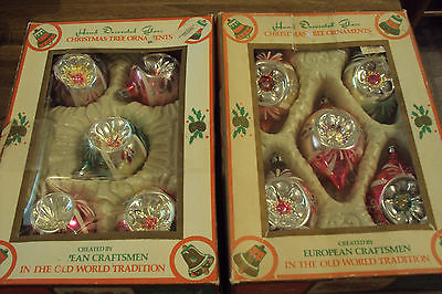 VINTAGE COMMODORE GLASS GLITTER INDENT TEARDROP CHRISTMAS ORNAMENTS10PC ORG.BOXS