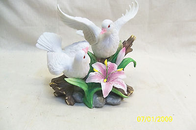 White Doves Ceramic Piece Pink Flowers Beautiful Item