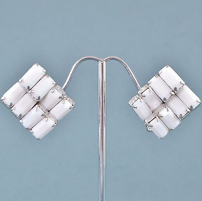 Title (ebay affiliate link): Vintage Earrings WEISS 1950s White Milk Glass Silvertone Bridal Jewellery