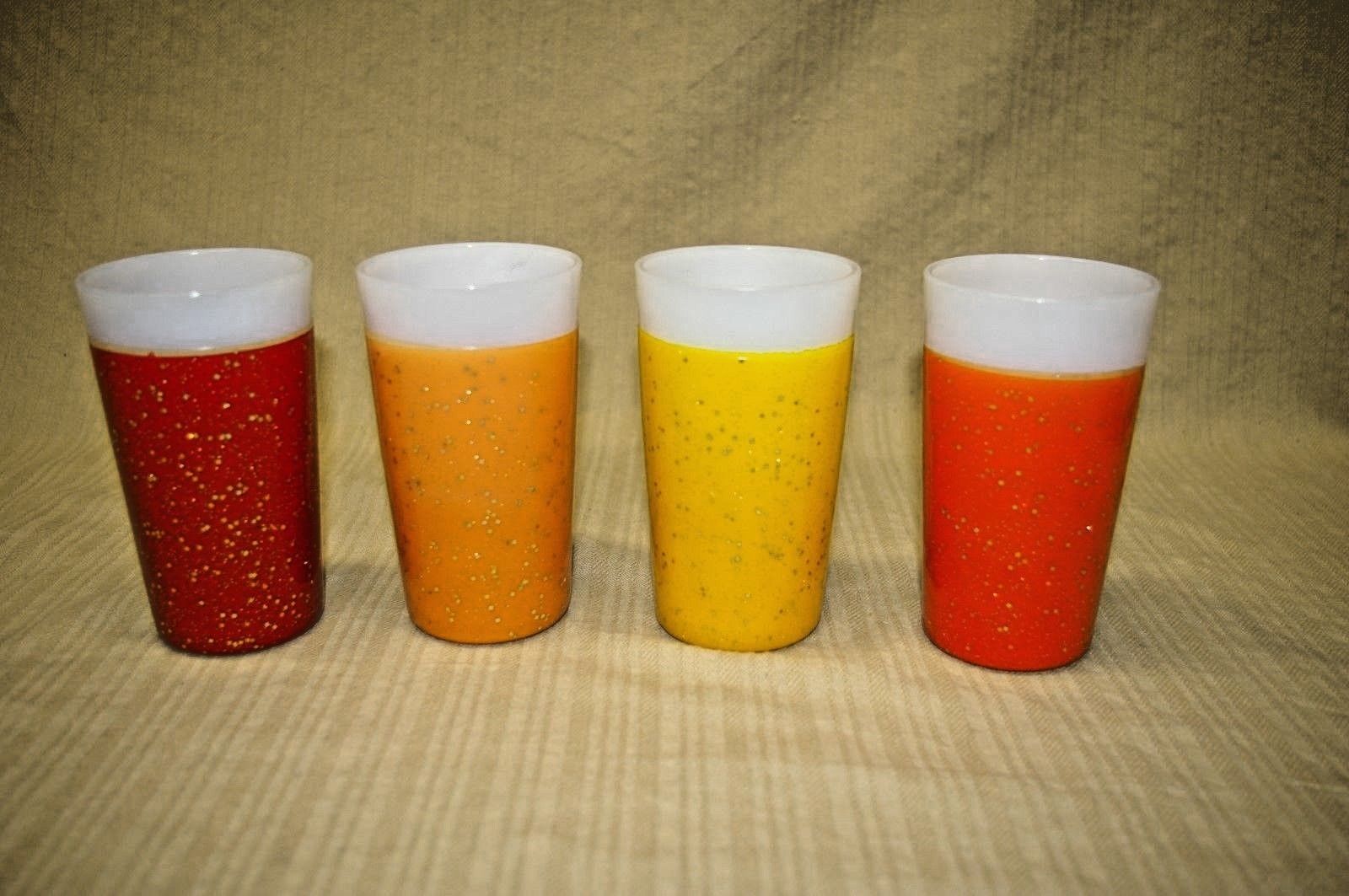 Title (ebay affiliate link): 4 Vintage Fire King GLAMALITE Milk Glass Tumblers Oranges, Yellow and Red
