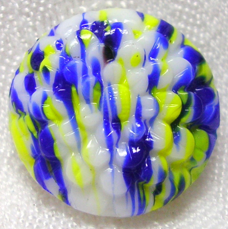 Title (ebay affiliate link): WONDERFUL VINTAGE MILK GLASS BUTTON w/COBALT & YELLOW GLASS STREAKS