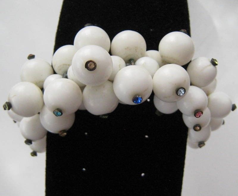 Title (ebay affiliate link): Vtg ANTIQUE Art Deco Victorian Bracelet Fruit Salad Rhinestone White Milk Glass