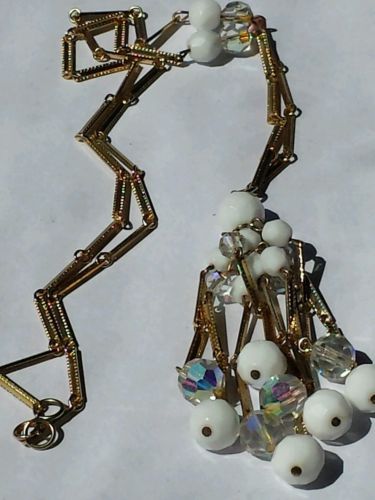 Title (ebay affiliate link): 24" ANTIQUE 12K G.F. NECKLACE & AURORA BORIALIS & WHITE MILK GLASS PENDANT