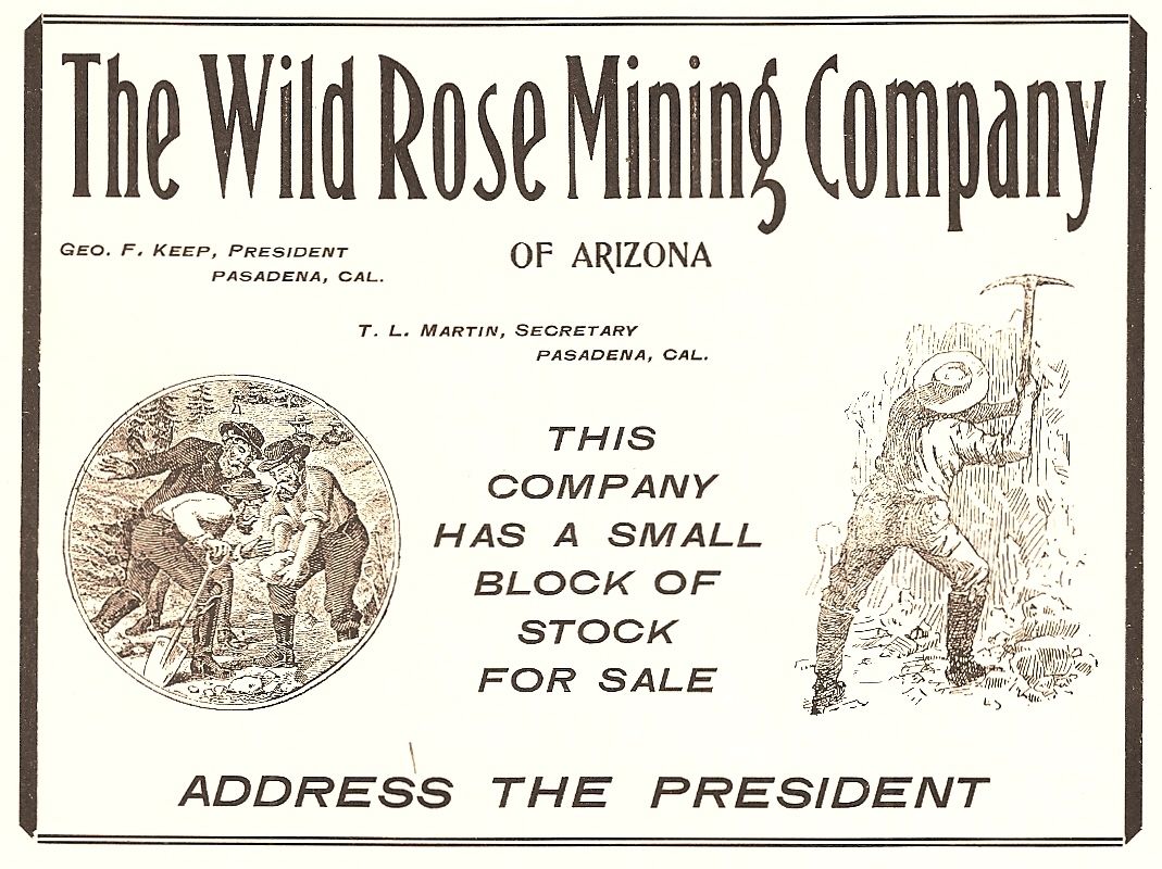 Title (ebay affiliate link): 1902 WILD ROSE MINING COMPANY OF ARIZONA, PASADENA, CALIFORNIA ADVERTISEMENT
