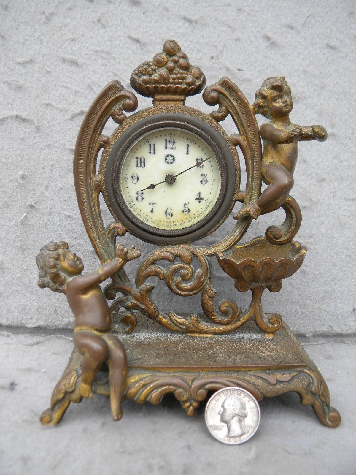 Title (ebay affiliate link): 1853 NEW HAVEN CLOCK Co. GILT BRONZE with PUTTI or CHERUBSTABLE CLOCK