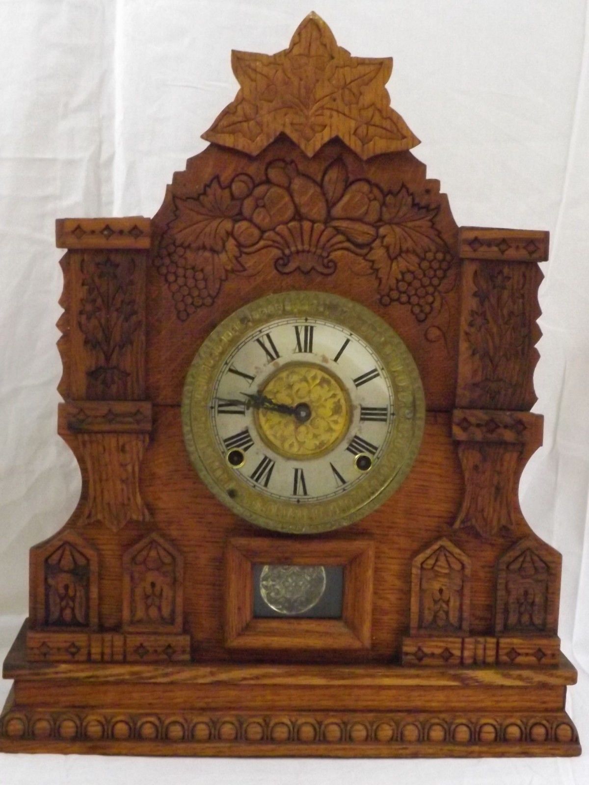 Title (ebay affiliate link): Antique Rare Ornate Oak Wm L. Gilbert Champion Chime 8 Day Mantel Shelf Clock