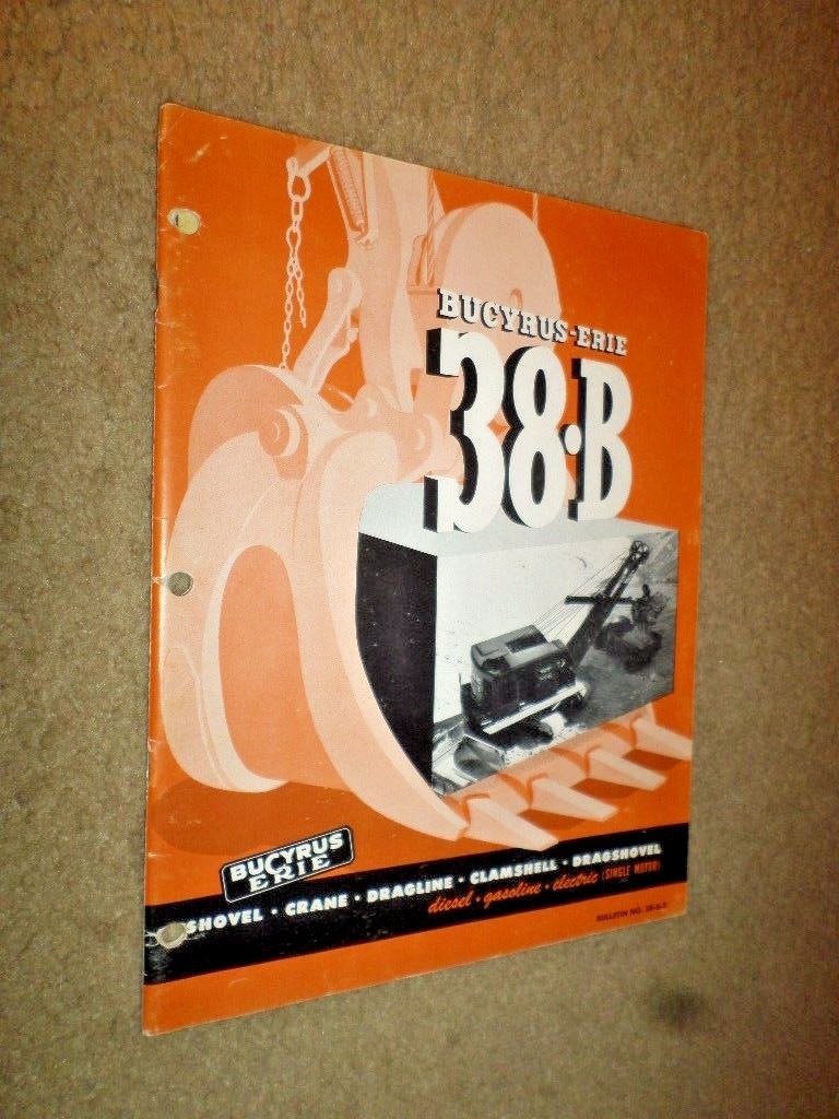 Title (ebay affiliate link): Y. Bucyrus-Erie "38-B Crawler Crane Clamshell Dragline" Tractor Dealer Brochure