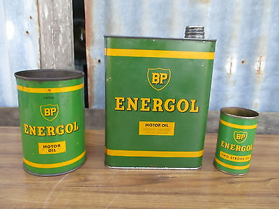 3 x Vintage BP ENERGOL Oil Can.Enamal Sign Petrol Pump Globe,Tractor Car