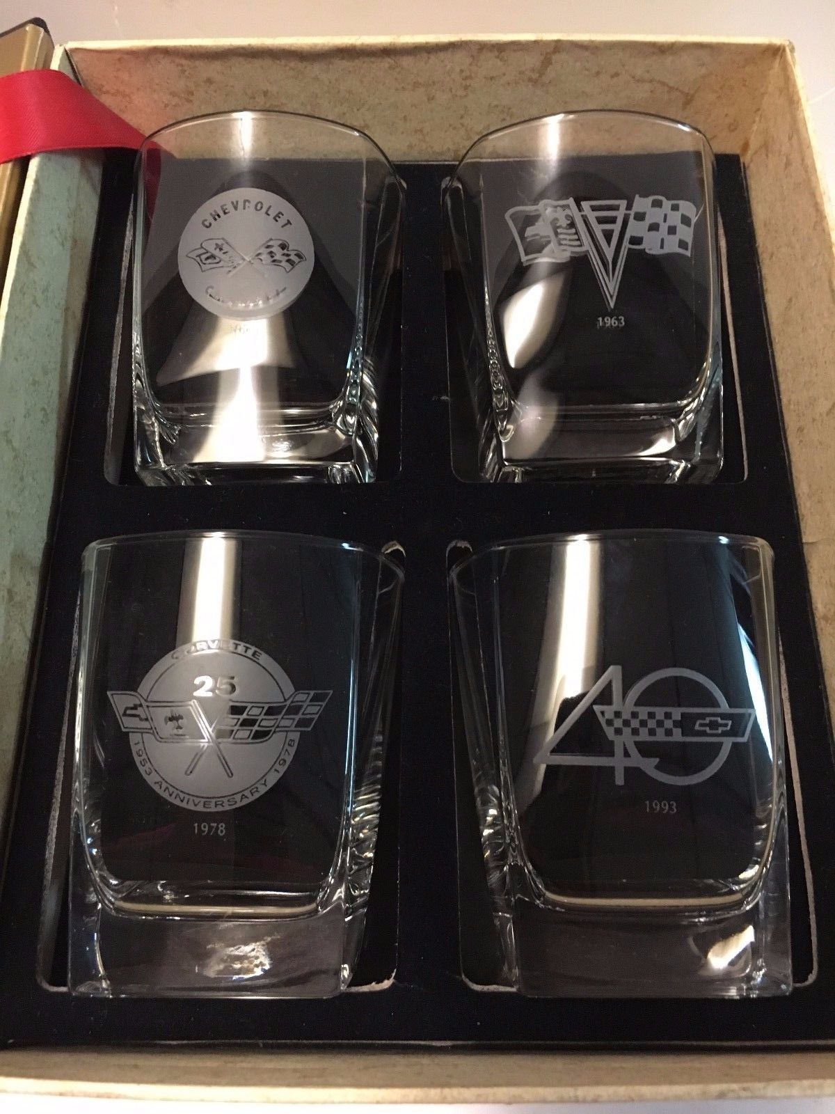 Title (ebay affiliate link): Corvette 40th Anniversary 4 Storybook Crystal Glasses & Display Sports Image