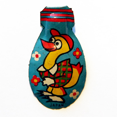 Vintage Tin Toy Clicker DUCK with Ballcap, Plaid Shirt