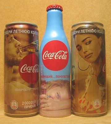 Title (ebay affiliate link): Coca-Cola 2 empty cans 0,33 + 1 empty aluminum Coca-Cola bottle Russia 2016