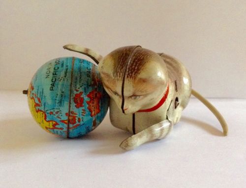 Title (ebay affiliate link): Tin Wind Up Toy of CAT with a Globe as a Ball! US Zone GERMANY GREAT Condition!