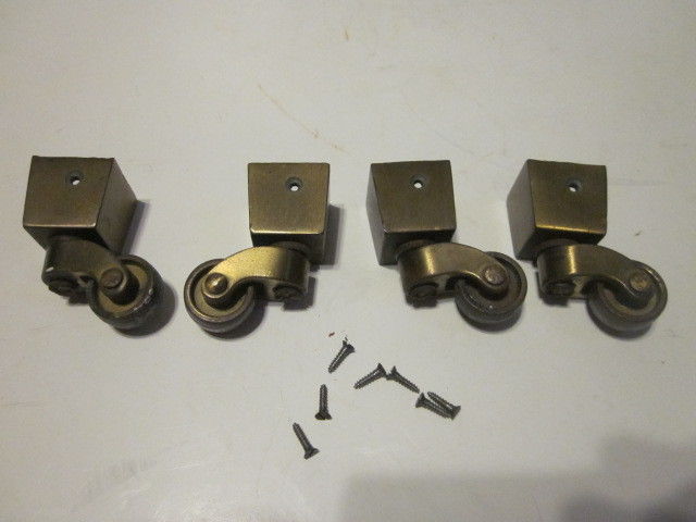 Title (ebay affiliate link): 4 VINTAGE BRASS TAMPERED SQUARE SMALL TABLE CASTERS
