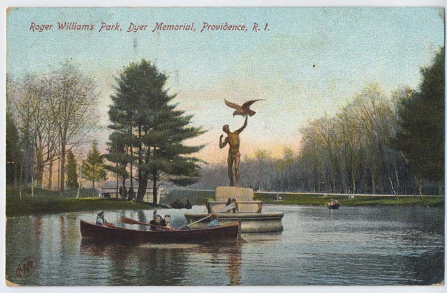 Title (ebay affiliate link): PROVIDENCE RI Roger Williams Park Dyer Statue Lake BOATING Rhode Island POSTCARD
