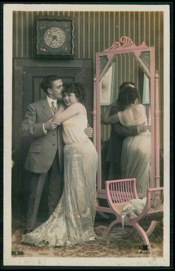 Title (ebay affiliate link): Erotic COUPLE sexy bride honeymoon romance french risque old 1910 Photo postcard