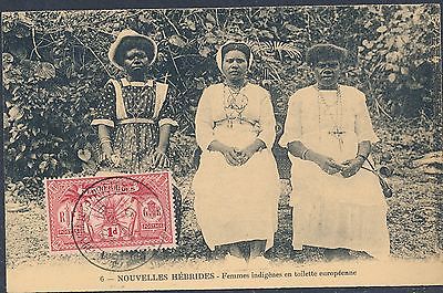 NEW HEBRIDES ETHNIC NATIVE WOMEN IN EUROPEAN DRESS PPC . Attractiv stamped