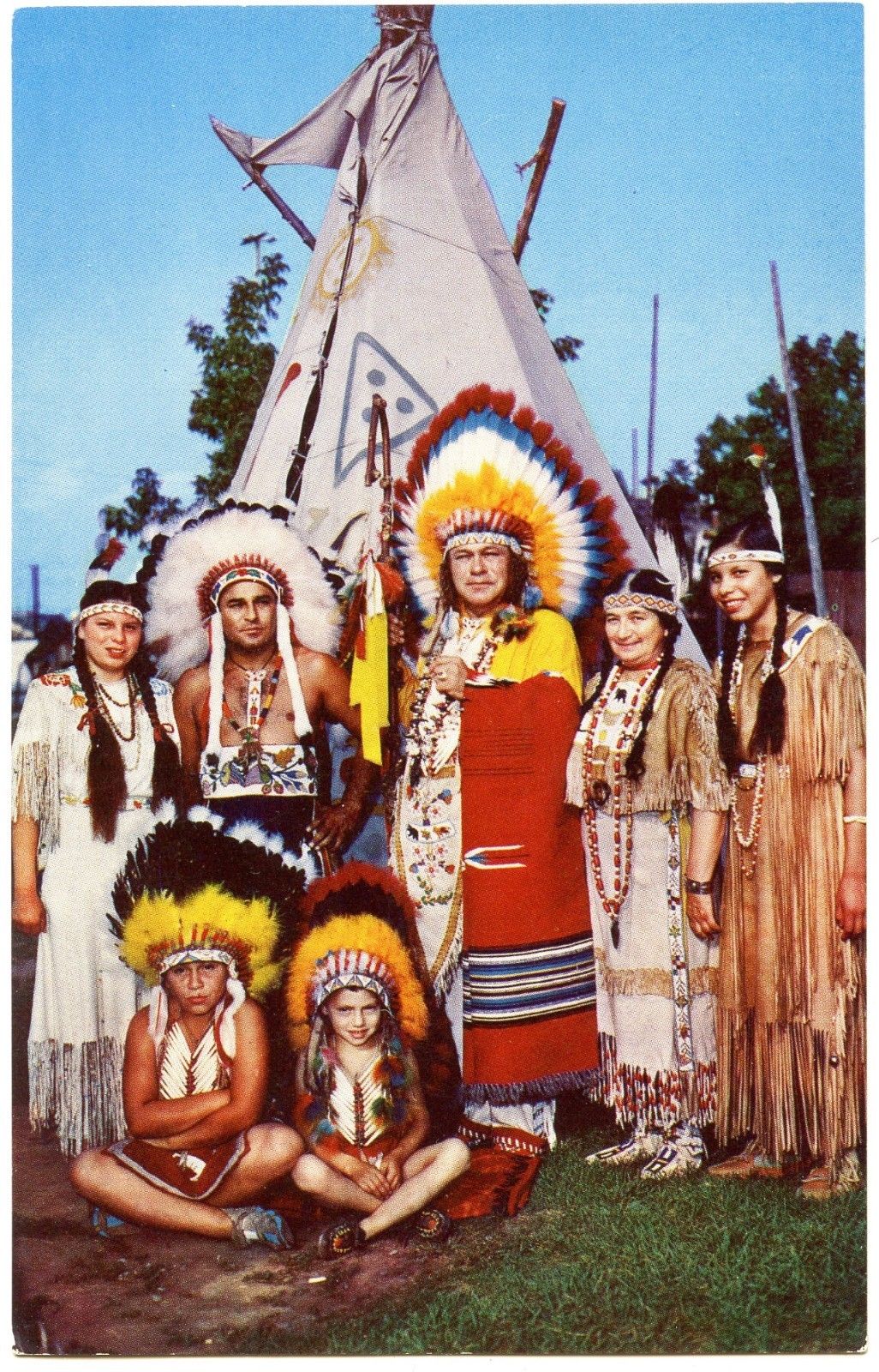 B4592 Chief & Family Caughnawaga Indian Reserve Quebec Canada Chrome PC # C3443
