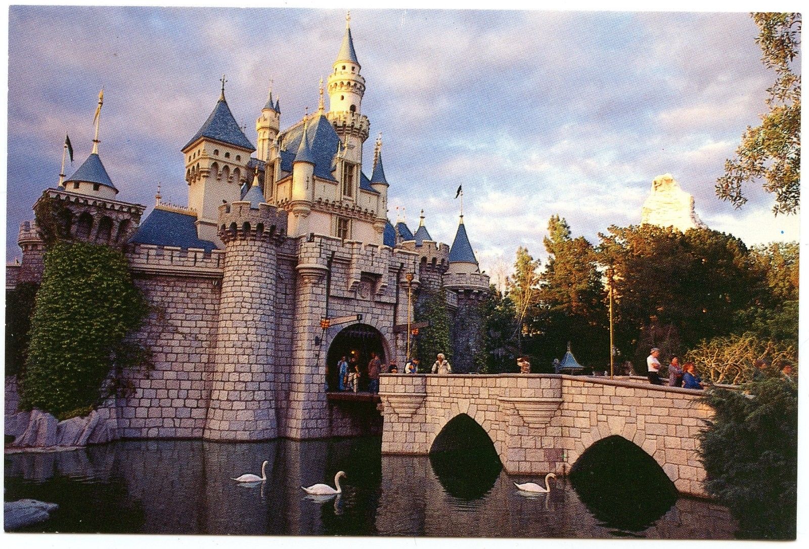 Title (ebay affiliate link): B4570 Disneyland Swans in Moat Sleeping Beauty Castle Continental PC #0100-11703