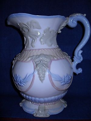 1800's RARE ANTIQUE MAJOLICA PITCHER WITH NORTHWIND FACE MASKS