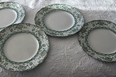 UPPER HANLEY ANTIQUE PLATE CLYTIE GREEN TRANSFERWARE SET OF 4